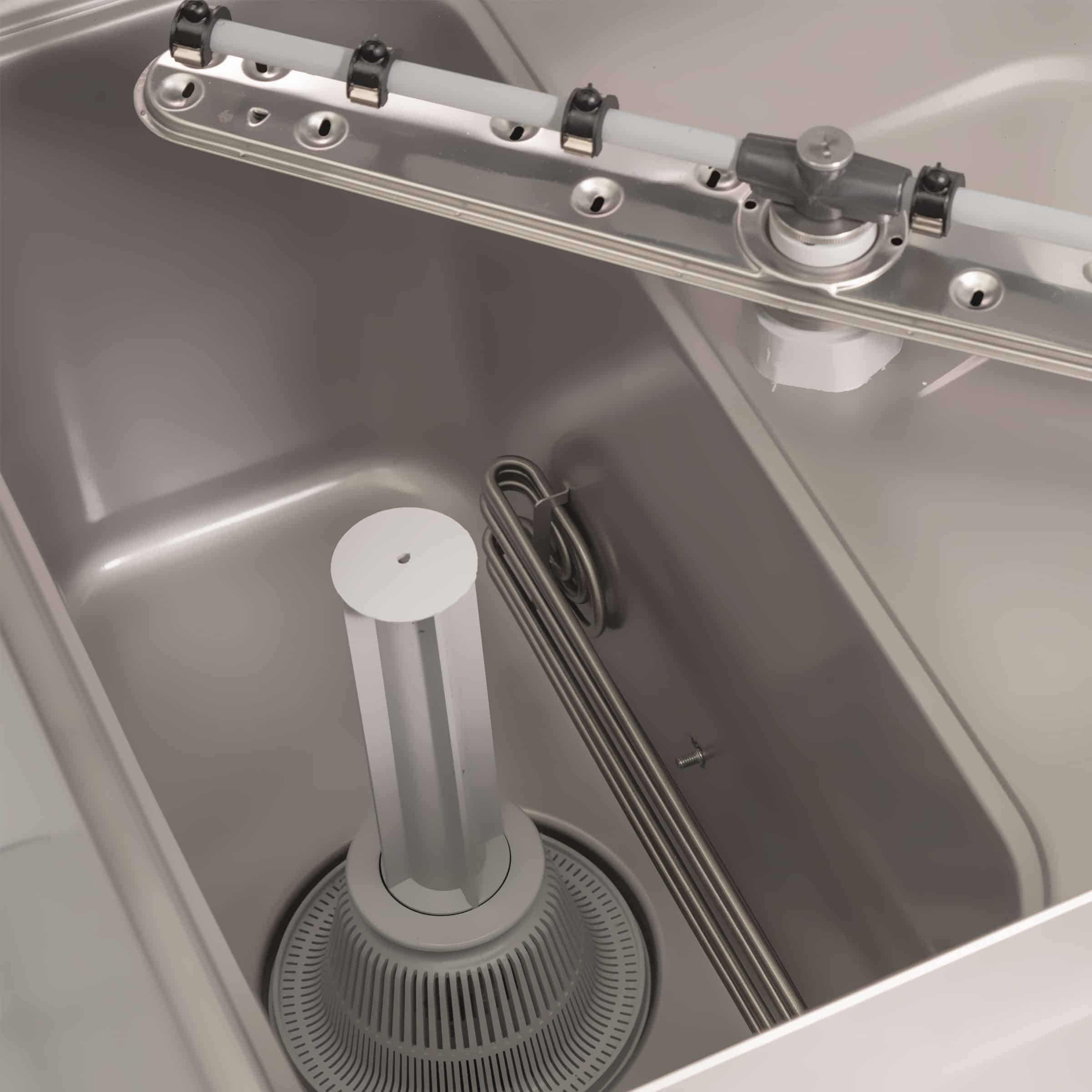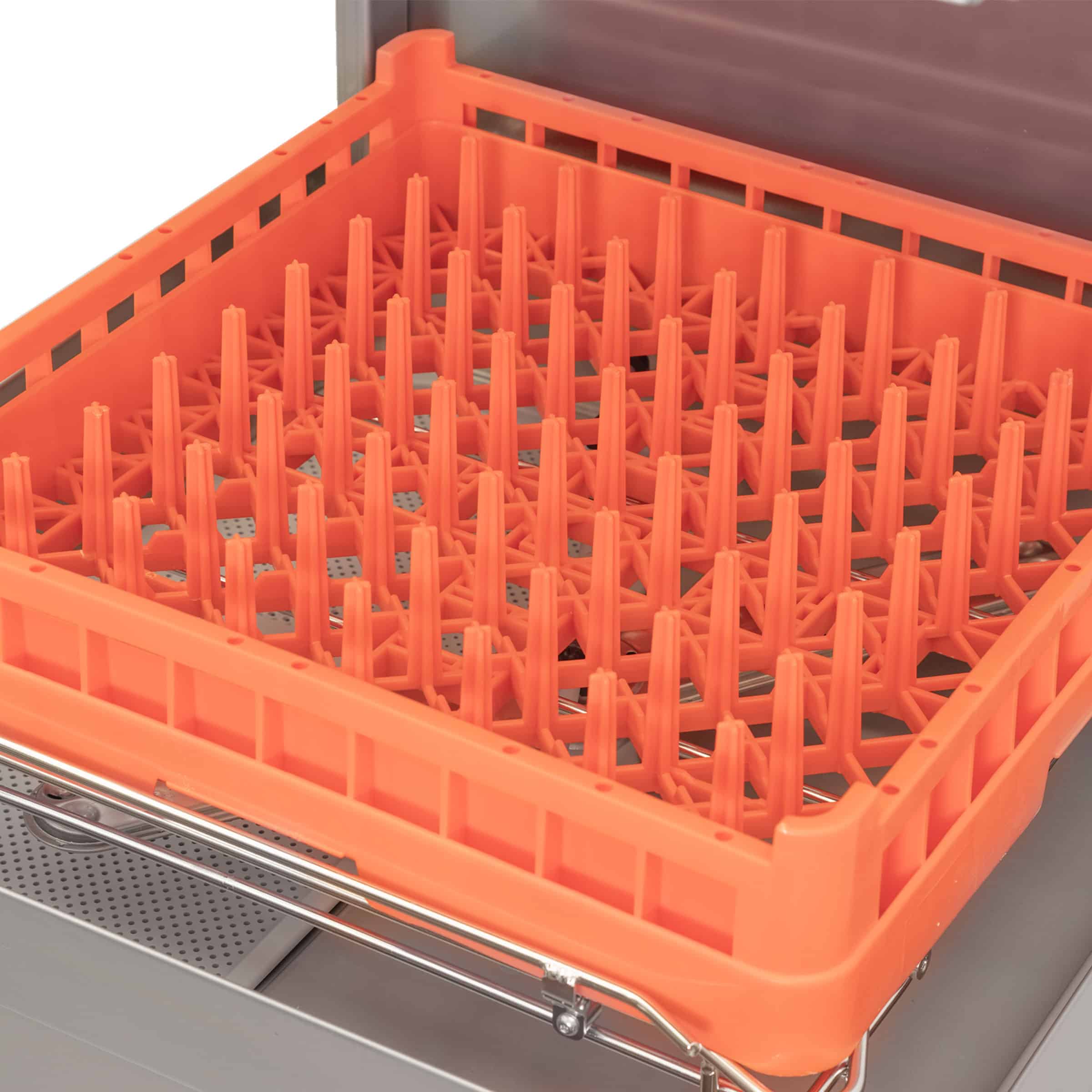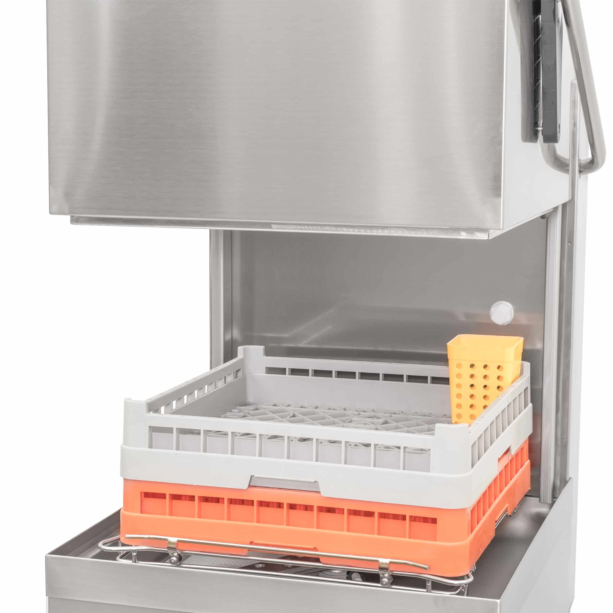 De RVS Asber Basic-line doorschuifvaatwasser is speciaal ontworpen voor de professionele horeca. Deze krachtige vaatwasmachine beschikt over drie verschillende wasprogramma’s, een capaciteit tot 40 korven per uur en handige functies als een elektronisch bedieningspaneel, temperatuurweergave en veiligheidsthermostaat. Dankzij de ingebouwde doseerpomp voor reinigingsmiddel, afvoerpomp en anti-terugslagklep is optimale hygiëne gegarandeerd. De machine is volledig uitgevoerd in roestvrij staal, heeft verstelbare poten en wordt compleet geleverd met bordenkorf, universele korf en bestekkorf. Geschikt voor 400V-aansluiting en inclusief 12 maanden garantie.