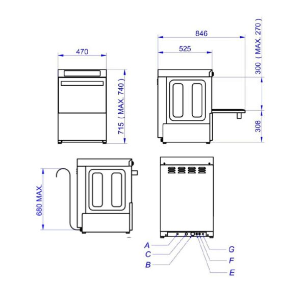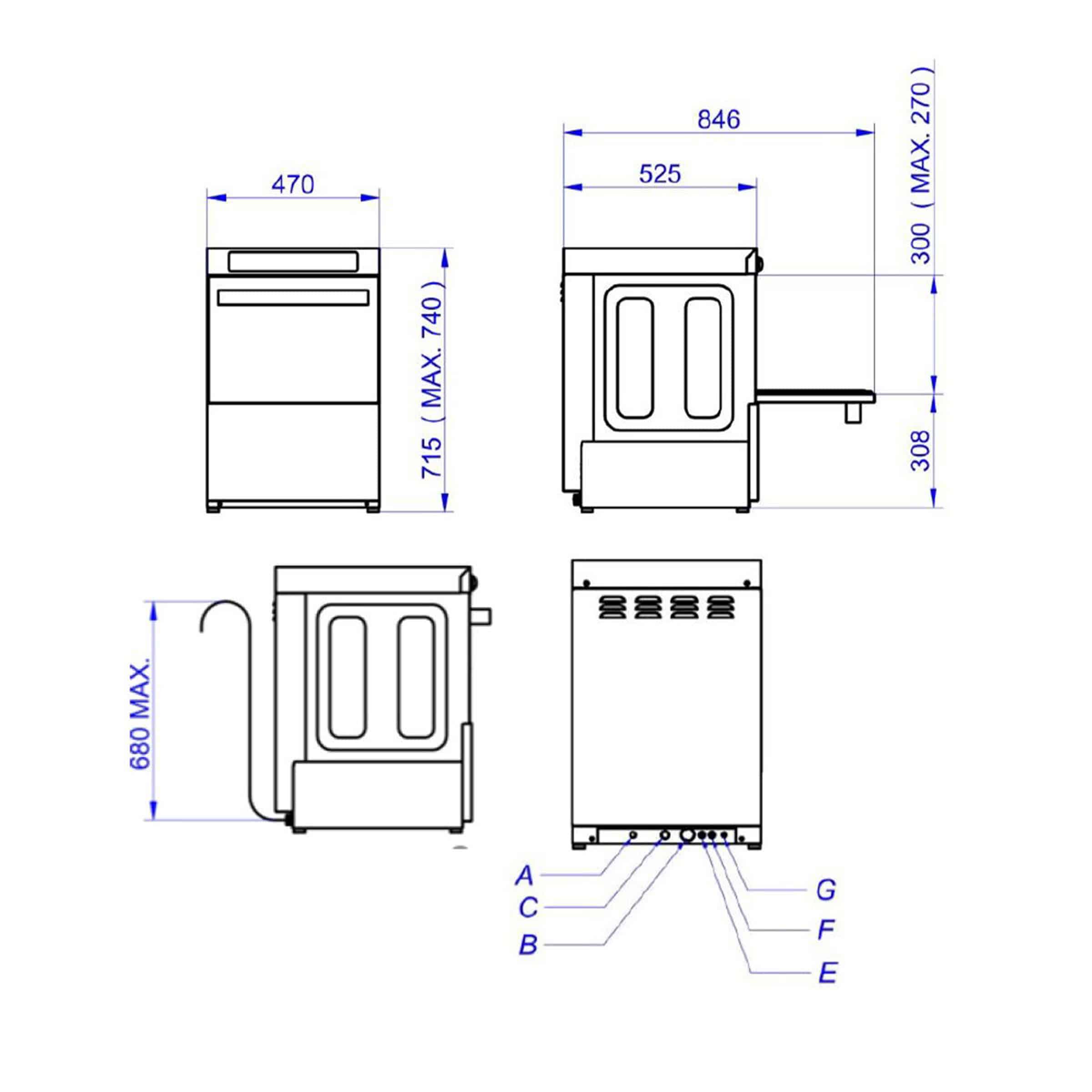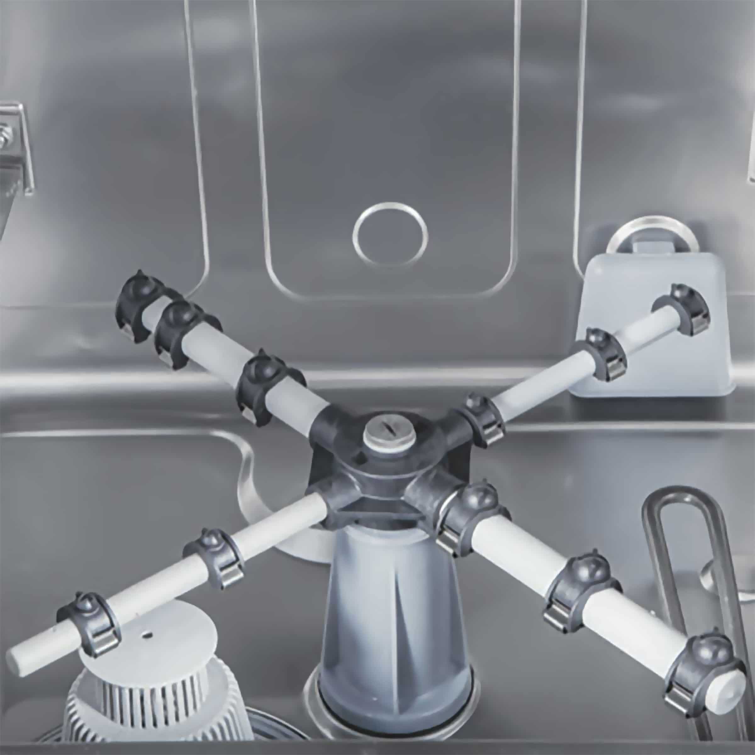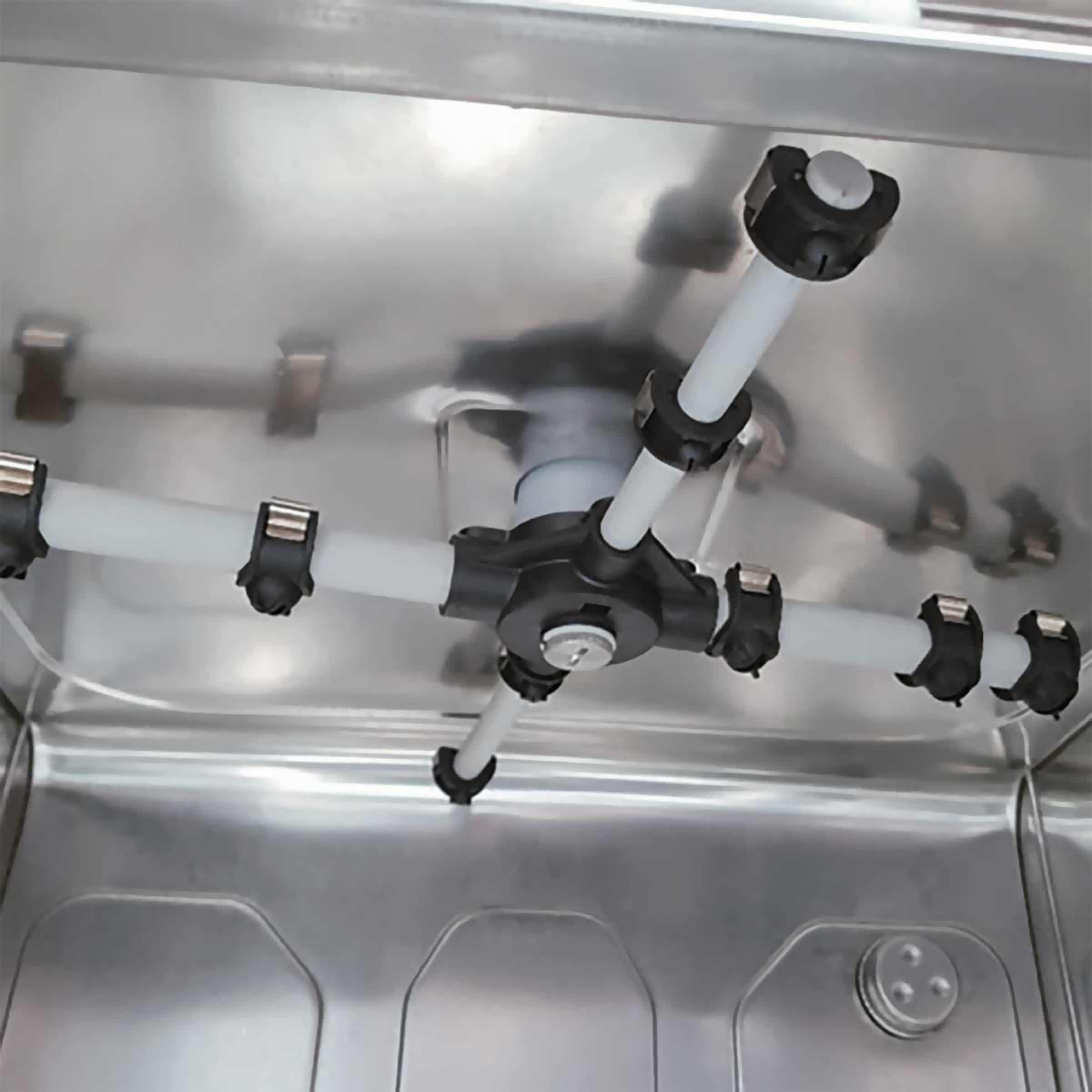 De in hoogte verstelbare wasarmen zorgen voor optimale reiniging, terwijl de geïntegreerde doseerpompen voor spoelmiddel en glansspoelmiddel zorgen voor een hygiënisch resultaat. Dankzij de ingebouwde afvoerpomp plaats je de machine waar het jou het beste uitkomt, zelfs zonder directe vloerafvoer. Veiligheid is gegarandeerd met de thermostaten in tank en boiler, en de anti-terugslagklep voorkomt problemen met terugstromend water.