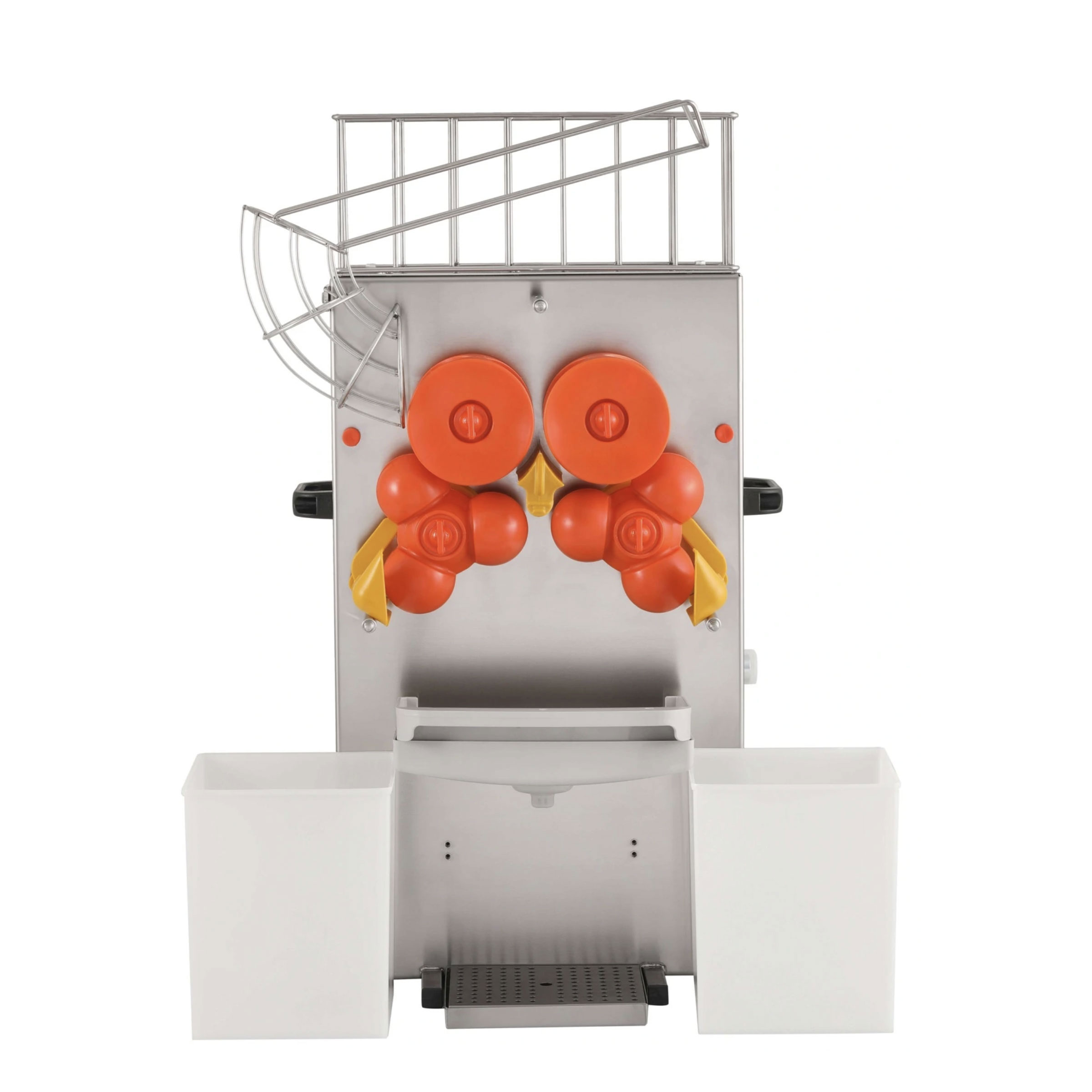 De voorkap is gemaakt van duurzaam polycarbonaat en voorkomt het spatten van het sap. Dankzij de veiligheidsschakelaar op de kap zal de machine niet werken als de kap niet op zijn plaats zit. Dit zorgt voor een veilig persproces zonder enig arbeidsongeval te veroorzaken.