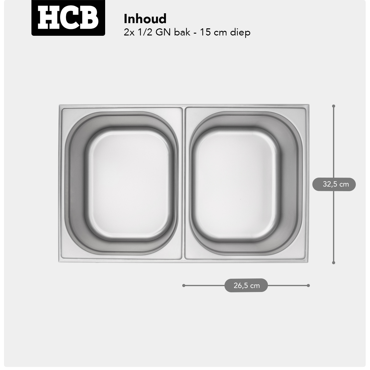 | Overige maten | Gastronorm 2 x 1/2 met deksel |