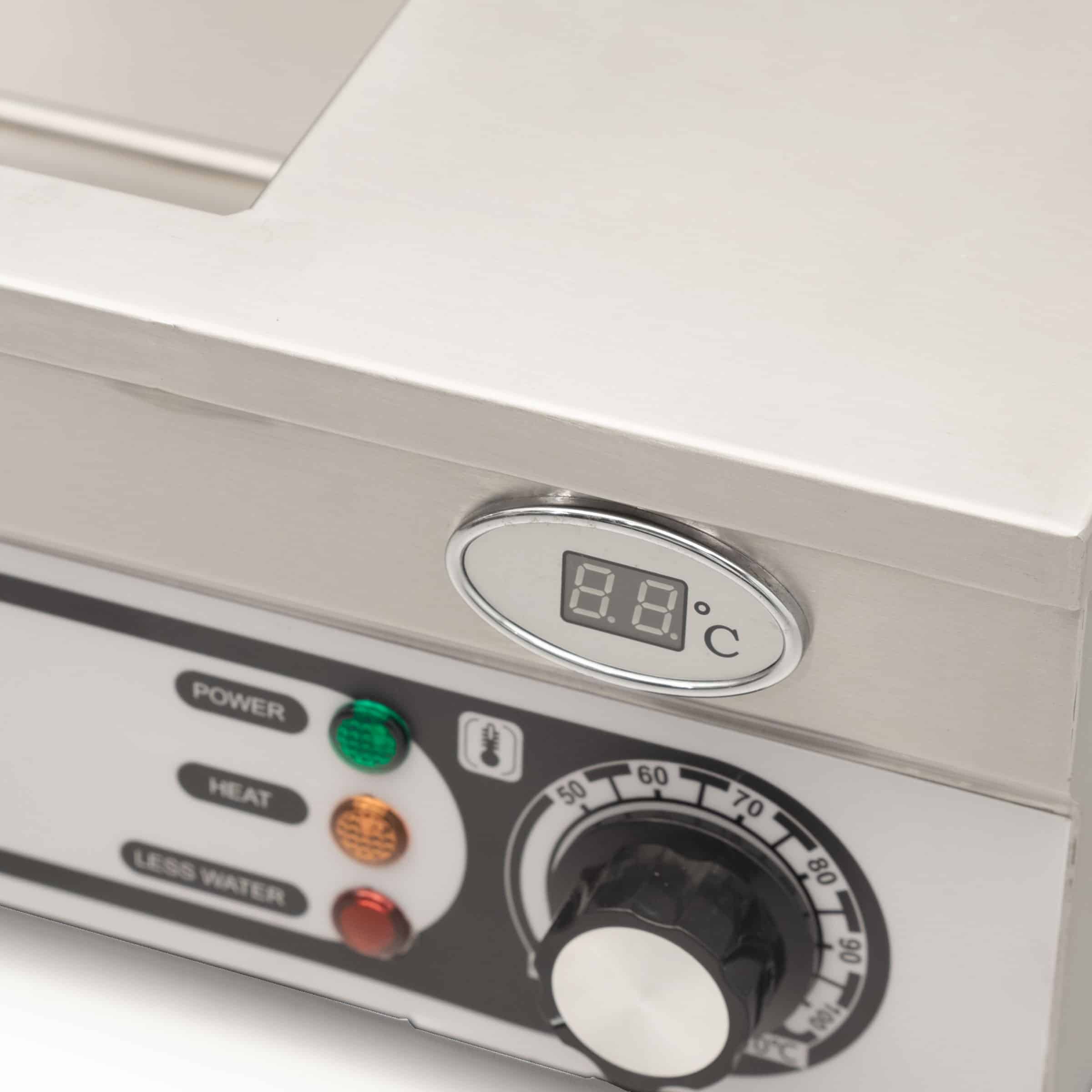 Deze professionele RVS bain marie van HCB is ideaal voor het warmhouden van diverse gerechten in gastronormbakken. Dankzij de instelbare temperatuur (30-95°C) en handige aftapkraan is dit apparaat een onmisbare oplossing voor buffet, catering en professionele keukens. De robuuste roestvrijstalen constructie garandeert duurzaamheid en eenvoudig schoonmaken.