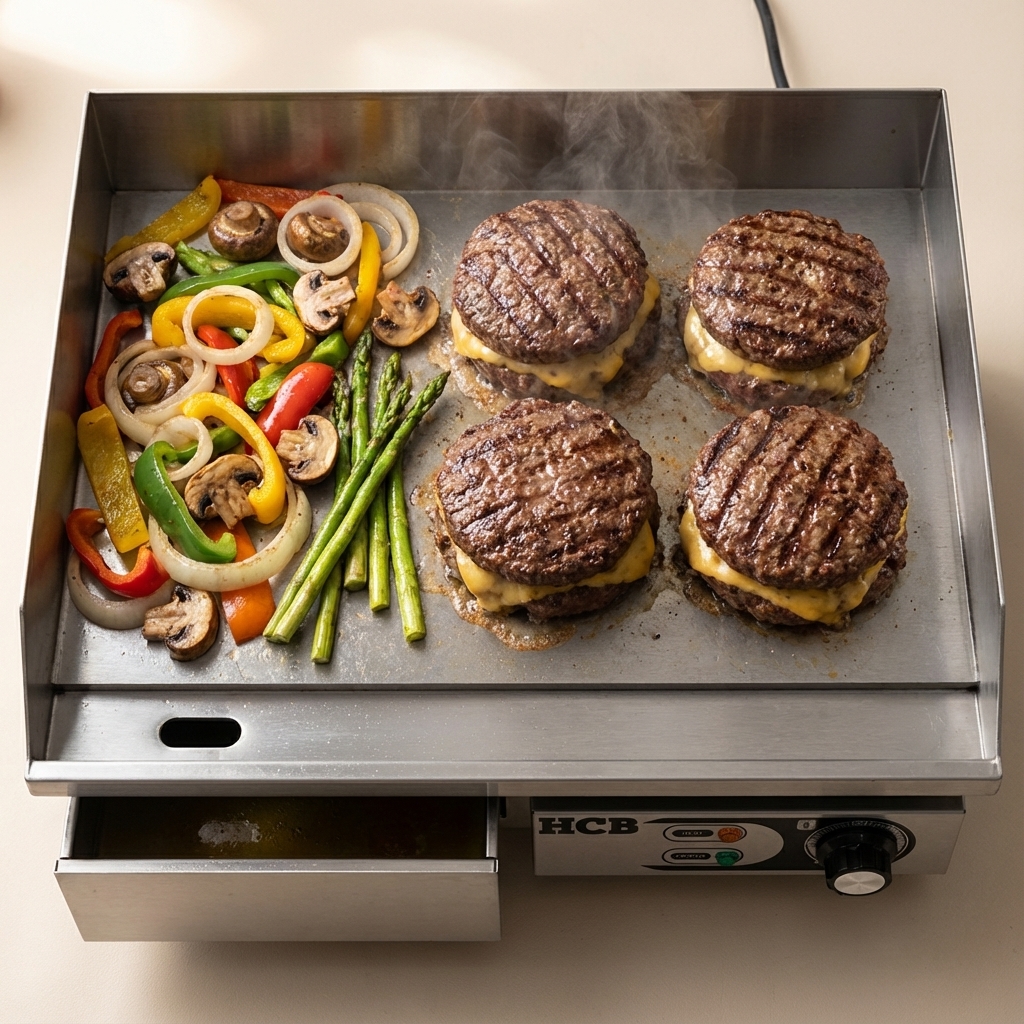 Ontdek de veelzijdigheid van de HCB RVS bakplaat! Met deze hoogwaardige bakplaat van HCB kunt u verschillende gerechten bereiden. De bakplaat is perfect voor het grillen van vlees, vis en groenten, en is ideaal voor professionele keukens.