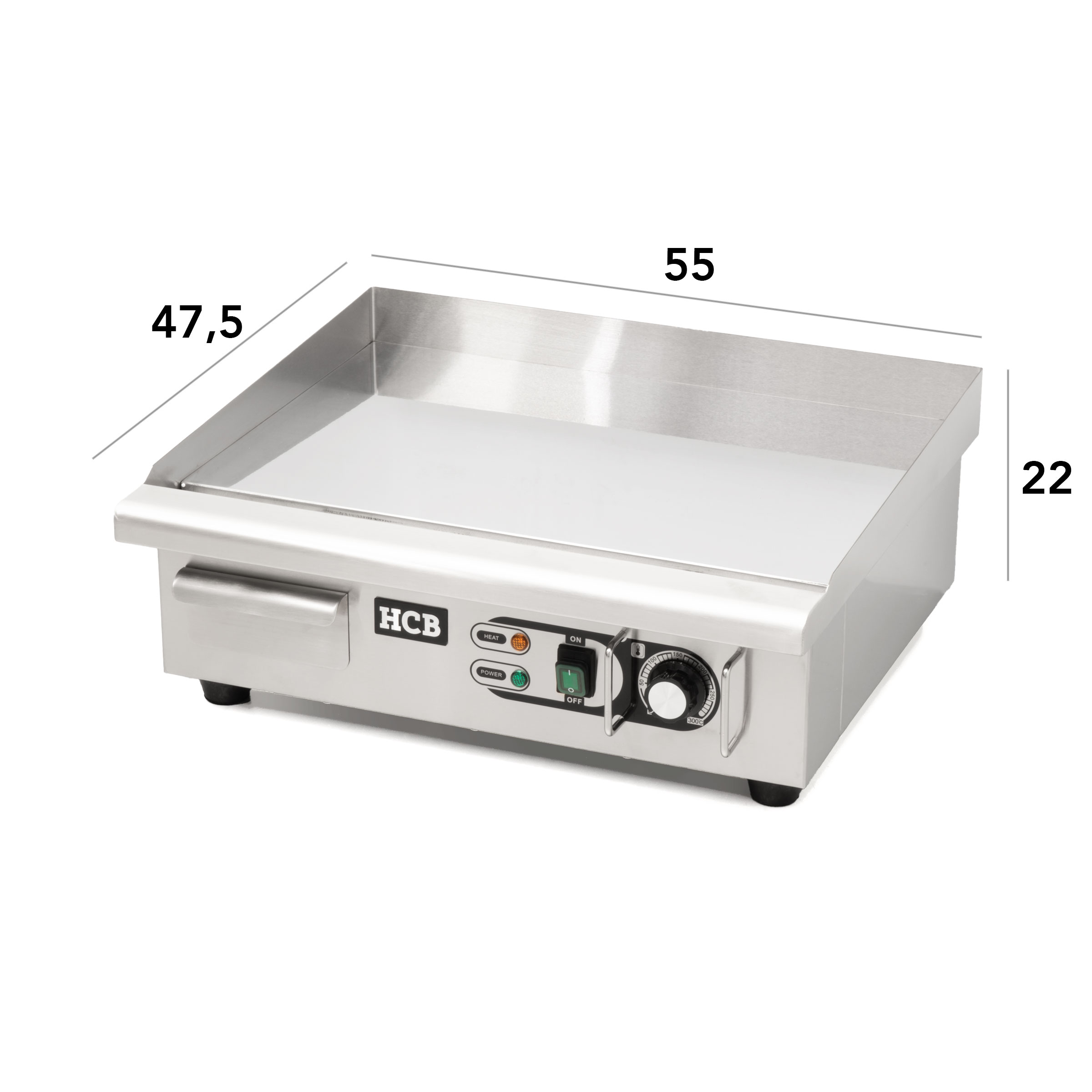HCB Bakplaat – glad – chroom – 55 cm – 230V – RVS