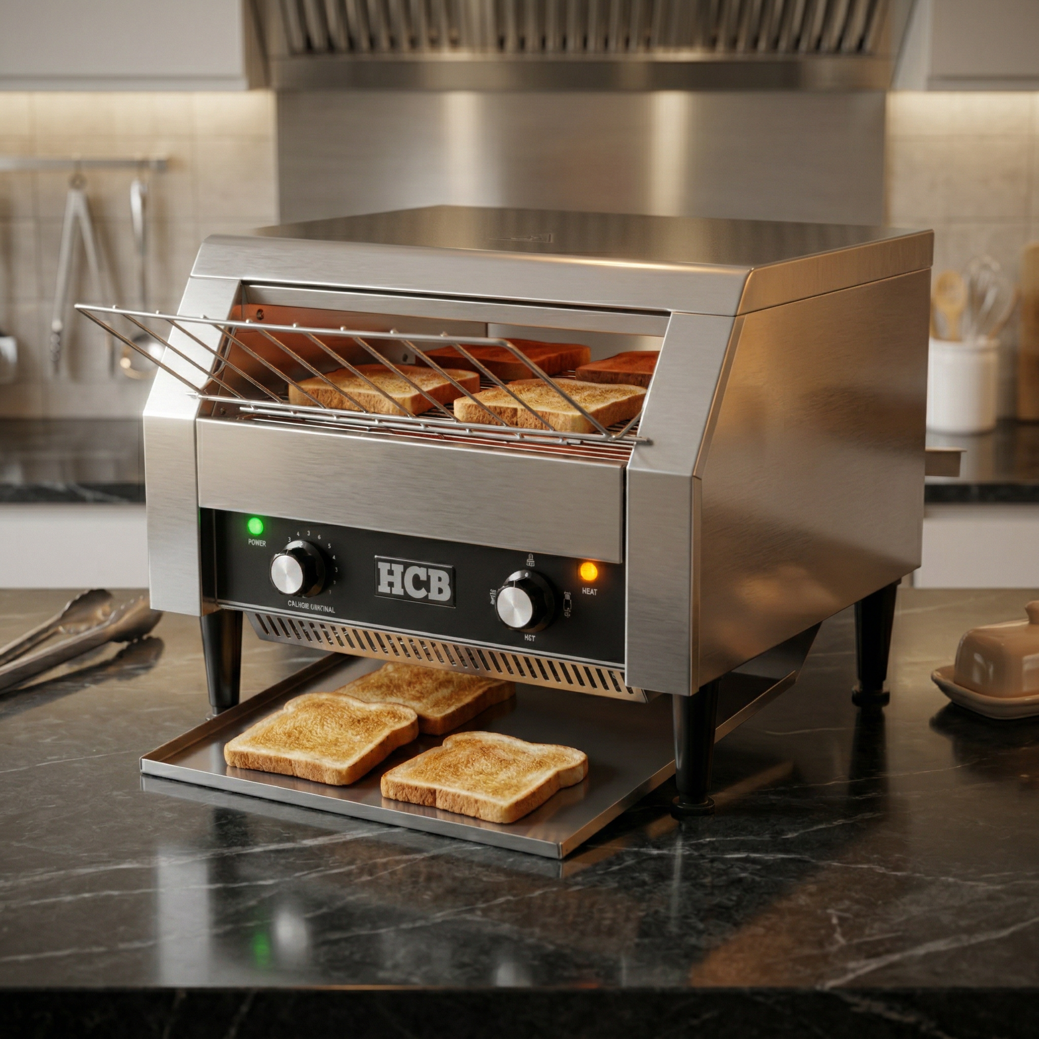 De toaster is ontwikkeld met gebruiksgemak in gedachten en heeft een makkelijke bediening, zodat uw gasten er makkelijk gebruik van kunnen maken zonder extra instructie. De snelheid van de transportband is handmatig in te stellen met de draaiknoppen aan de voorkant van het apparaat, zodat je precies in kunt stellen hoelang je je brood wil toasten.