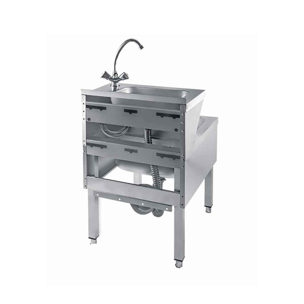 HCB Dubbele wasbak – uitgietbak – 50 cm – RVS