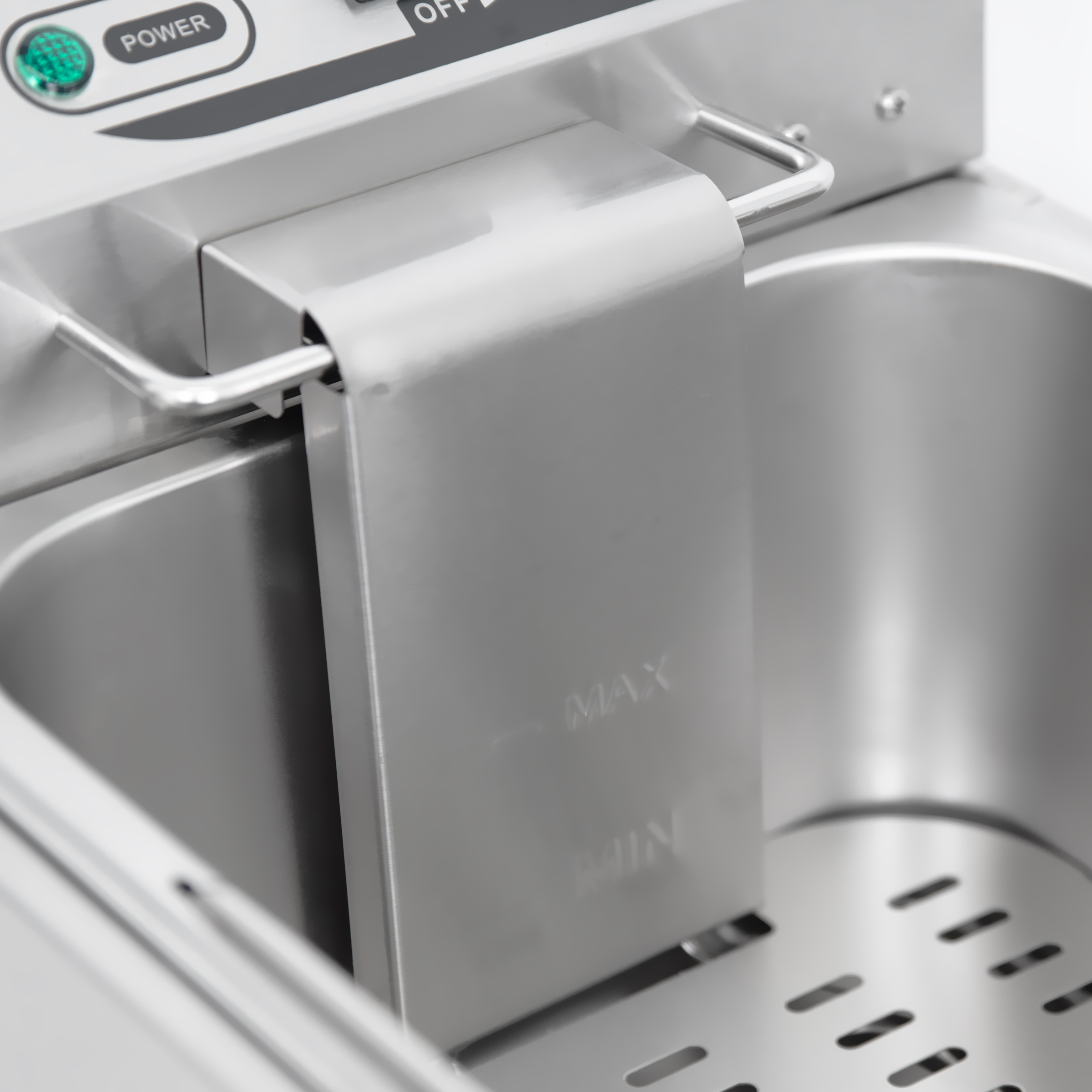 Deze friteuse met een inhoud van 6 liter is uitermate geschikt voor de professionele keuken. Ideaal geschikt voor het frituren van kleinere hoeveelheden in een keer, maar de kwaliteit doet niet onder aan zijn maat de frietpan is perfect geschikt om verschillende soorten voedsel te frituren zoals verse frites, groente, snacks. Het schoonmaken is een makkelijk karwij, alle onderdelen zijn makkelijk te verwijderen en doordat alles van rvs is makkelijk te reinigen.