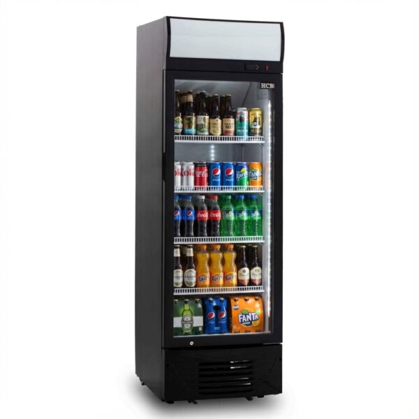 HCB Glasdeurkoeling met lichtbak – 278 liter – zwart – 230V