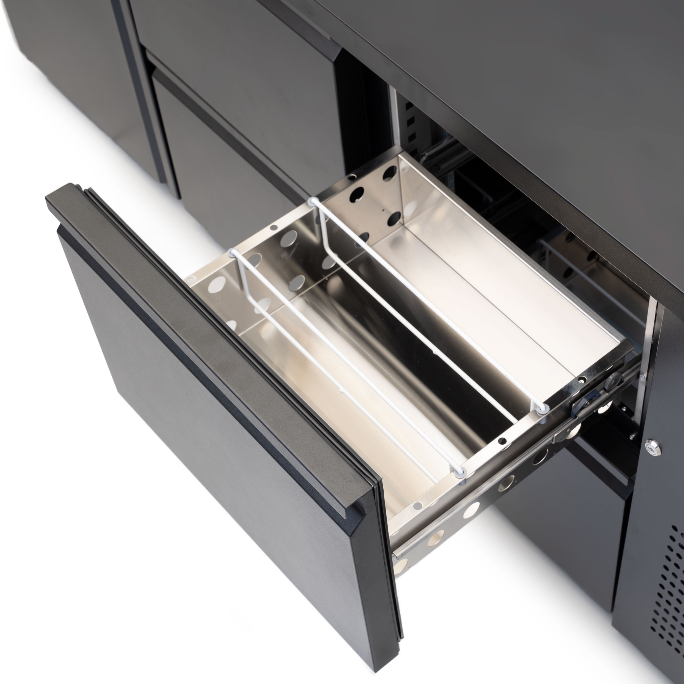 Deze professionele barkoeling / backbar koelkast past perfect in cafés, cocktailbars, lunchrooms, sportkantines en restaurants. Door de plaatsing achter de bar of onder het werkblad heb je jouw bestverkopende producten altijd binnen handbereik, terwijl je gasten een nette, strakke opstelling zien. De afwerking oogt modern en professioneel en de binnenzijde is ontworpen om praktisch én hygiënisch te kunnen werken.