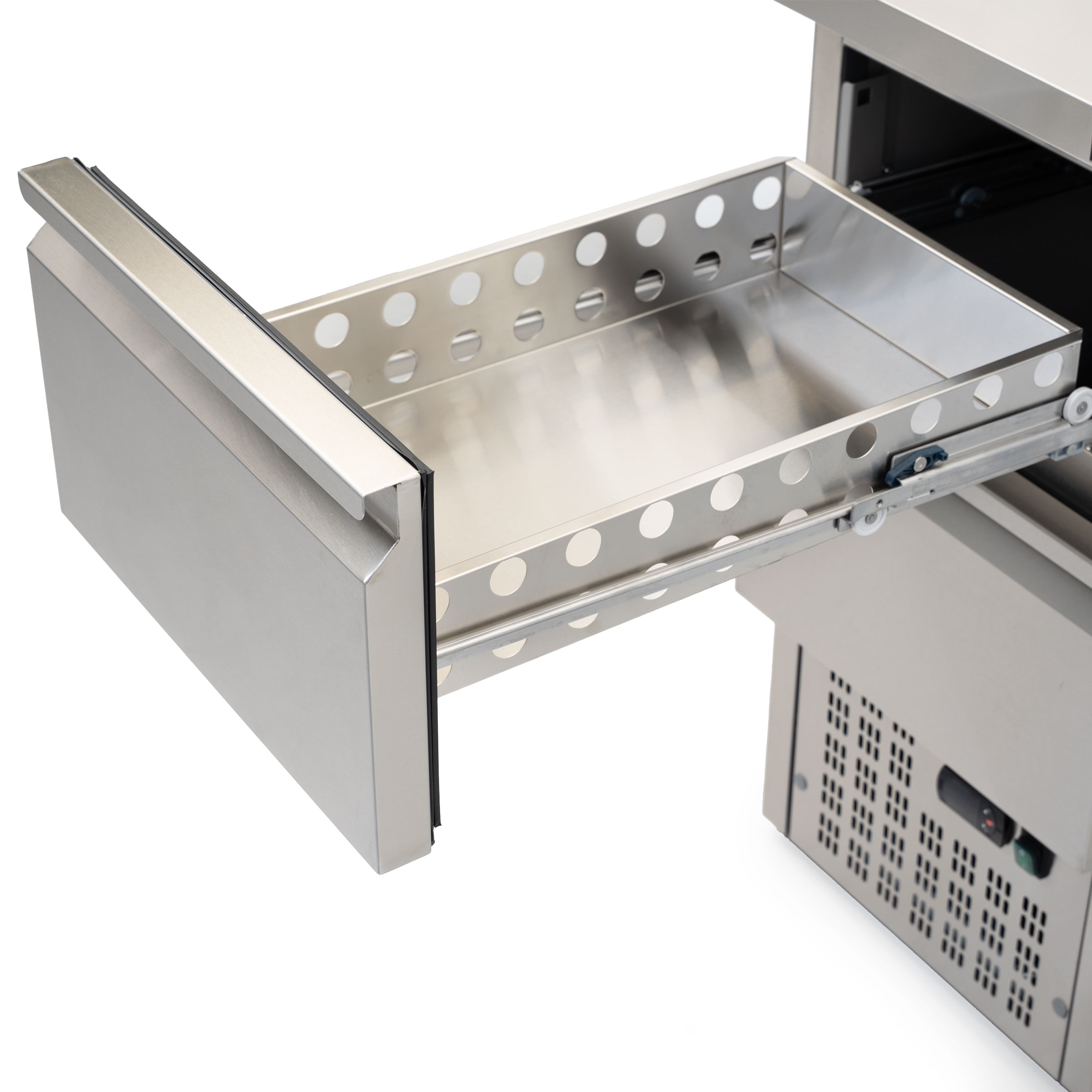 Met de ruimte voor 1/1 gastronorm bakken biedt deze koelwerkbank genoeg opslagruimte voor al uw ingrediënten, sauzen en dressings.