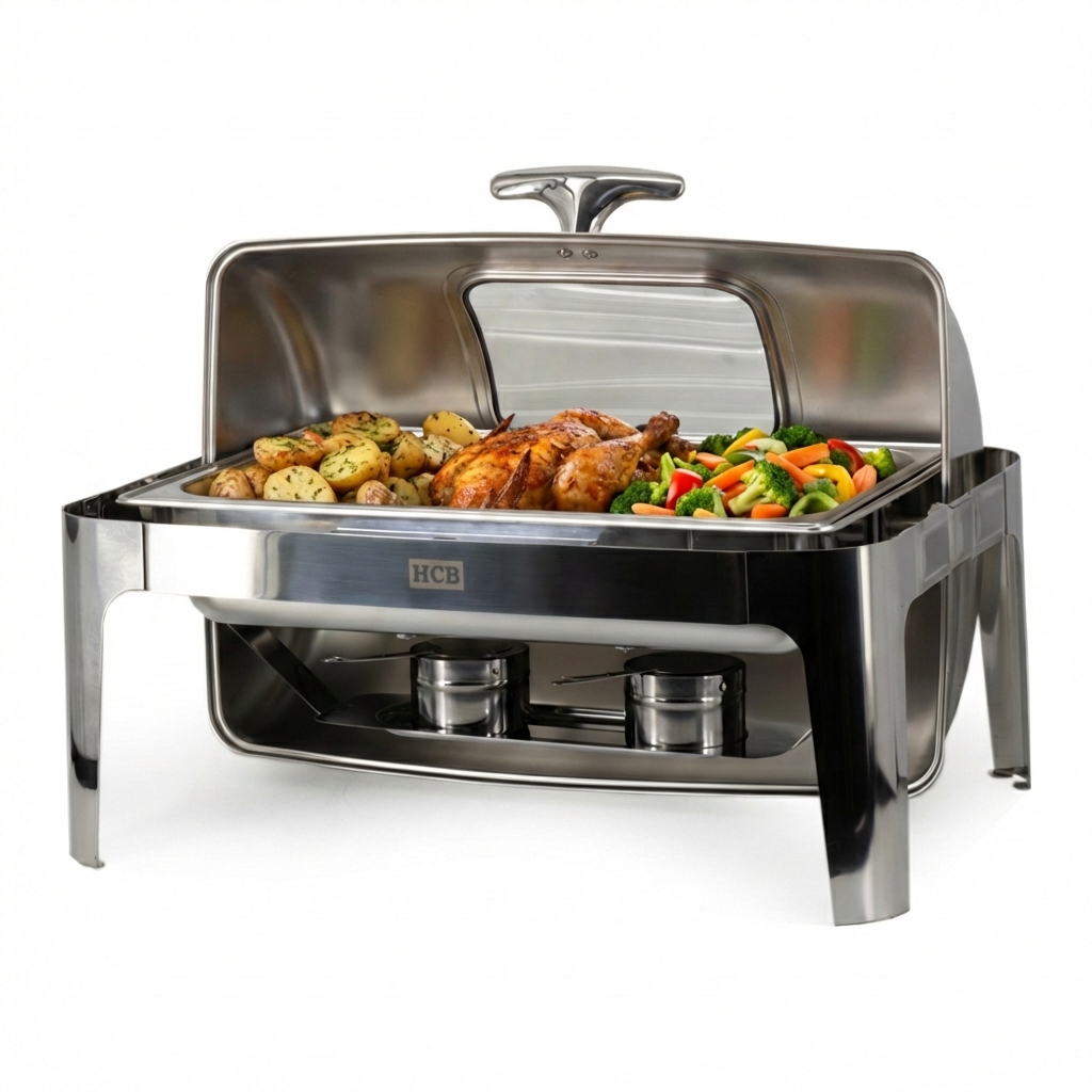 HCB Chafing dish – rolltop – 1/1 GN – kijkglas – 9 liter – RVS