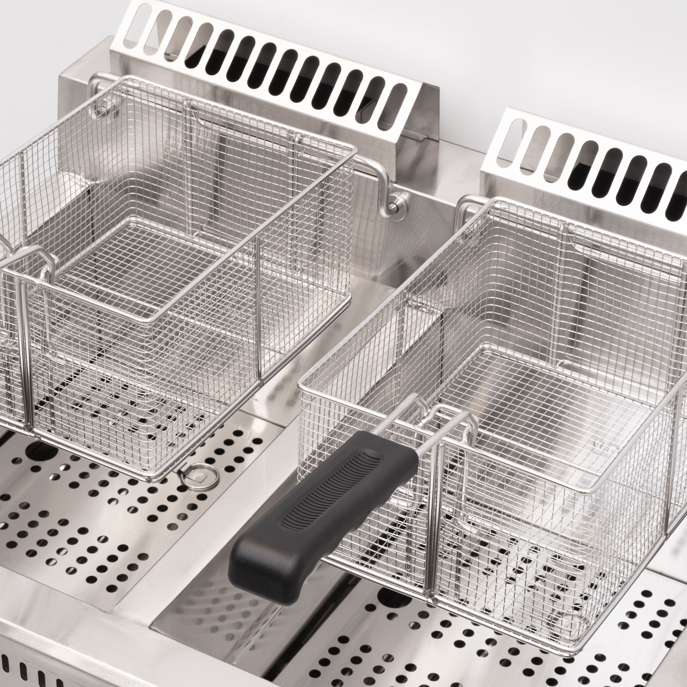Deze friteuse met een inhoud van 2 x 21 liter is uitermate geschikt voor de professionele keuken. Ideaal geschikt voor het frituren van grotere hoeveelheden in een keer. De frietpan is perfect geschikt om verschillende soorten voedsel te frituren zoals verse frites, groente, snacks.