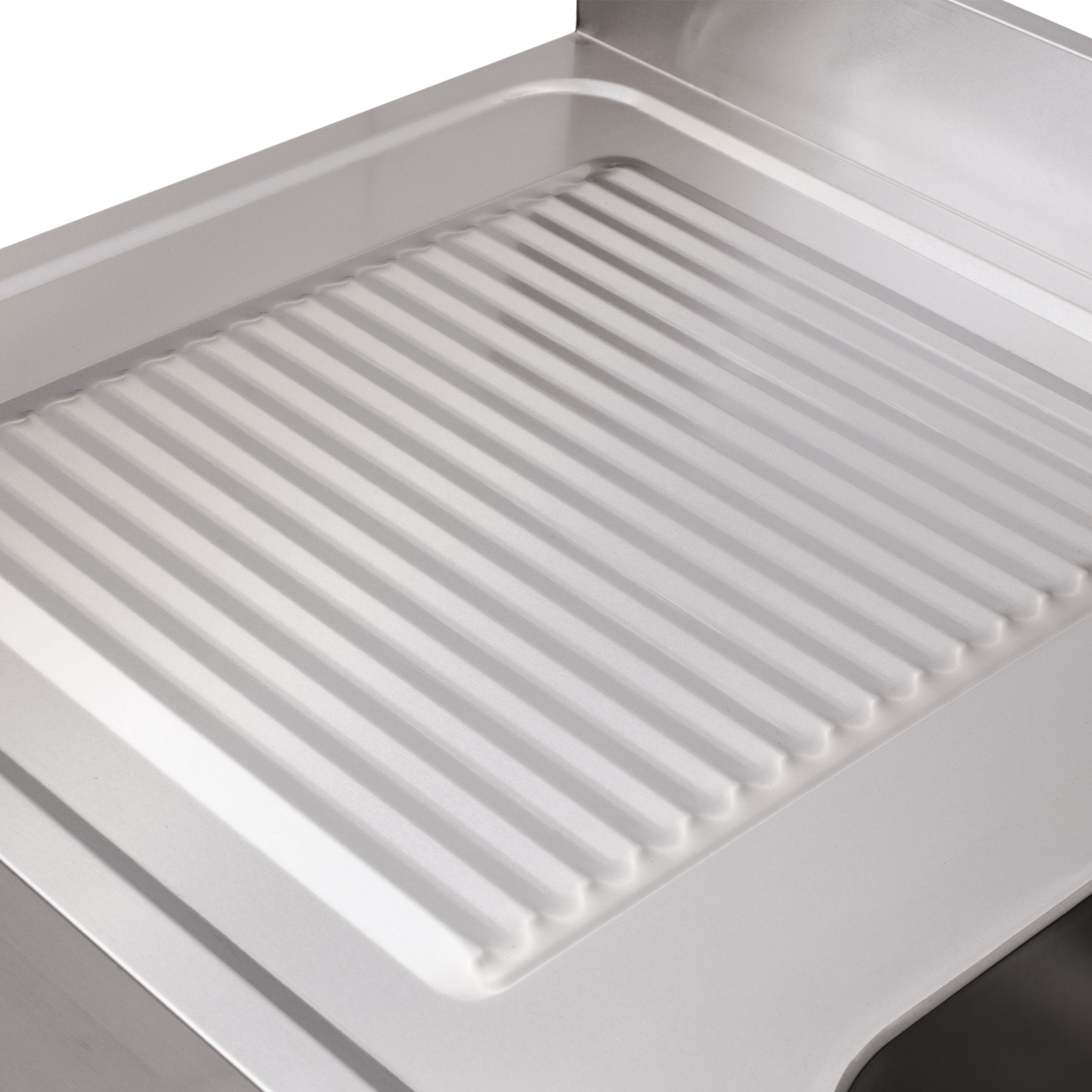 In een professionele keuken draait alles om snelheid, overzicht en hygiëne. Een betrouwbare spoeltafel is onmisbaar om je werkproces soepel te laten verlopen. Deze RVS spoeltafel is ontworpen voor intensief gebruik en sluit naadloos aan op de hoge eisen van de horeca. Dankzij het ruime werkoppervlak en de diepe spoelbak werk je efficiënt, zelfs tijdens de drukste momenten. Schoonmaken gaat snel en eenvoudig, zodat je altijd voldoet aan de strengste hygiënenormen.