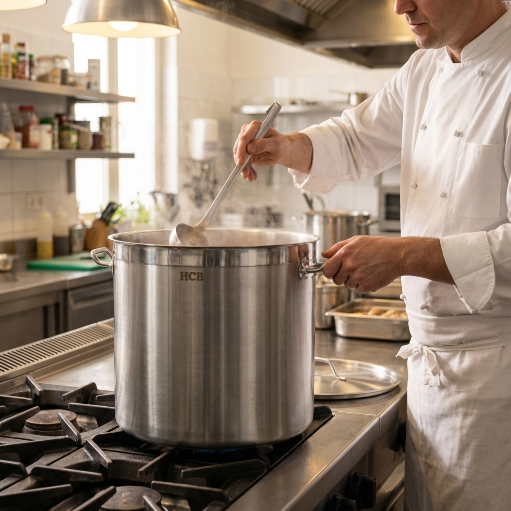 Deze professionele kookpan van 25 liter combineert horecakwaliteit met gebruiksgemak voor zowel de thuiskok als de professionele keuken.