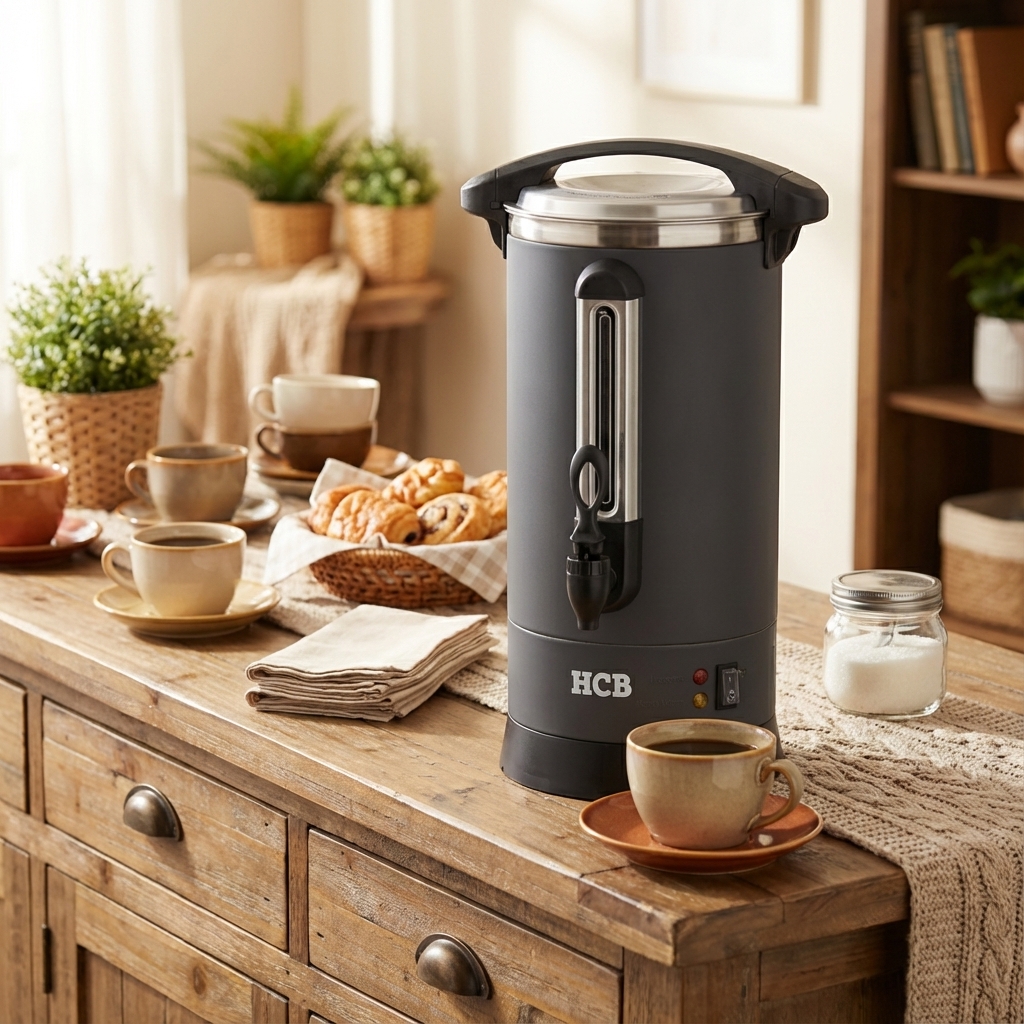 Met zijn grote capaciteit en efficiënte verwarmingselementen zorgt de HCB percolator ervoor dat je telkens weer kunt genieten van heerlijke, hete koffie – perfect voor momenten waarop je grotere hoeveelheden koffie wilt serveren zonder in te leveren op smaak.