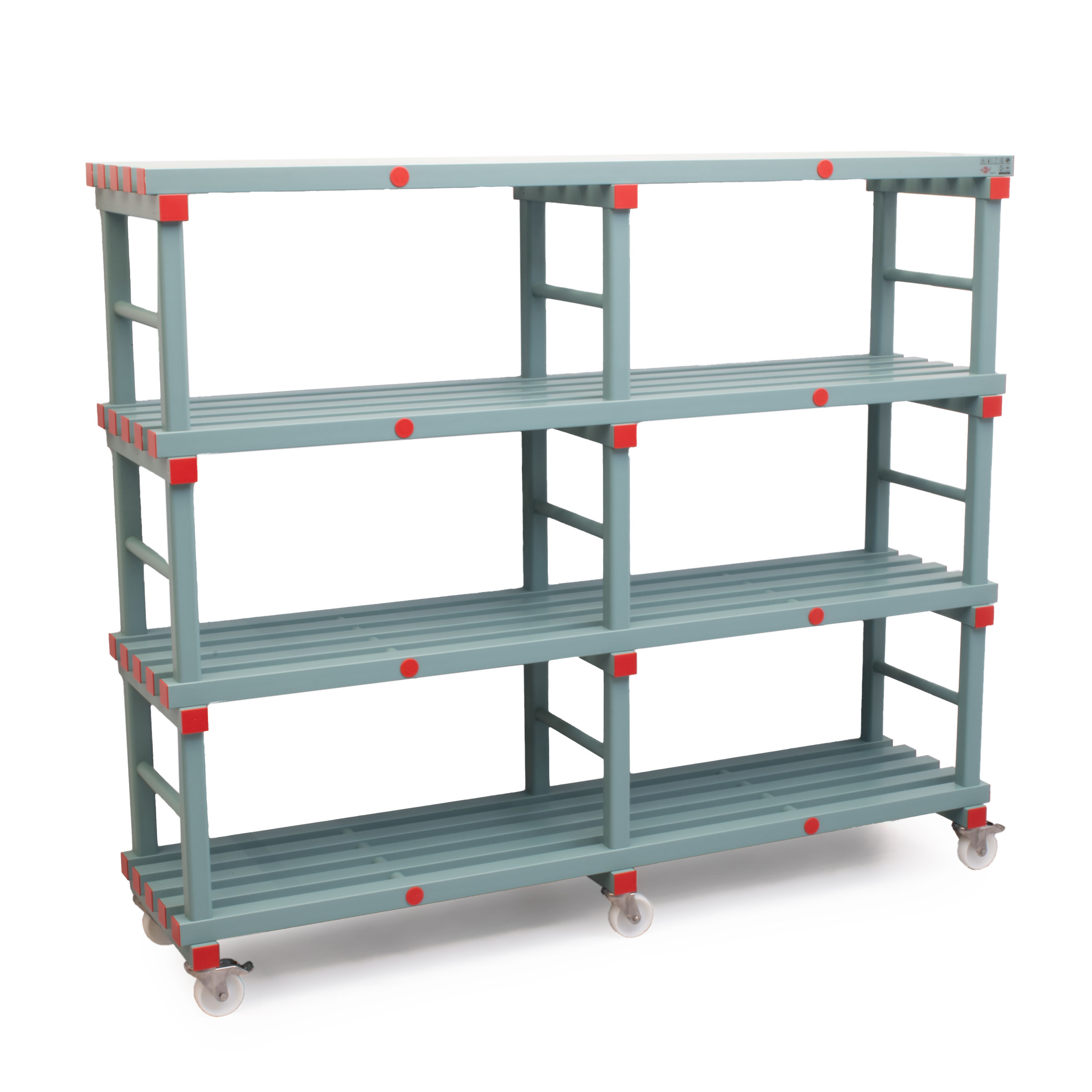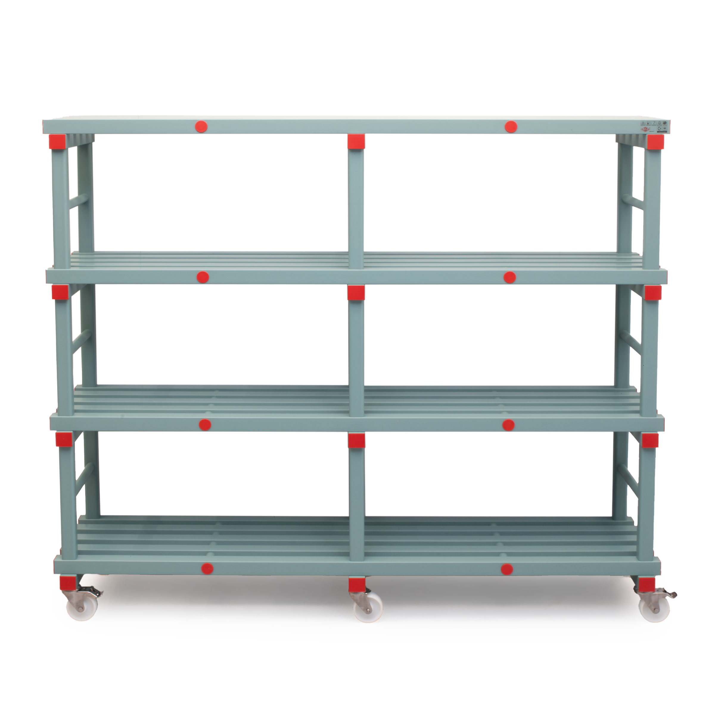 Het grote voordeel van dit model is dat hij verrijdbaar is. Je rijdt hem makkelijk naar je werkplek om aan te vullen, en zet ’m daarna weer strak terug. Dat scheelt gesjouw, houdt je gangpaden vrij en maakt schoonmaken onder/achter het rek veel makkelijker. De stelling is daarnaast ontworpen als een stabiel opslagsysteem met hoge draagkracht per schap, waardoor je ook zwaardere kratten en voorraad netjes en overzichtelijk kwijt kunt.