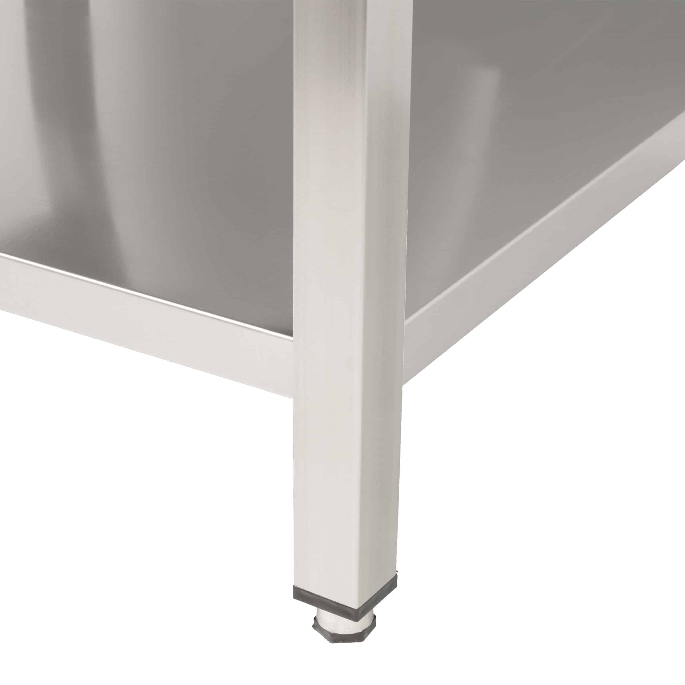 Deze RVS spoeltafel met geïntegreerde spoelbak uit de Premium-line van HCB is ontwikkeld voor intensief dagelijks gebruik in professionele horecakeukens, productiekeukens en afwasruimtes. Het gelaste model biedt maximale stabiliteit, terwijl de royale spoelbak van 50 x 50 x 30 cm ruim voldoende plaats biedt voor pannen, GN-bakken en groot keukengerei.