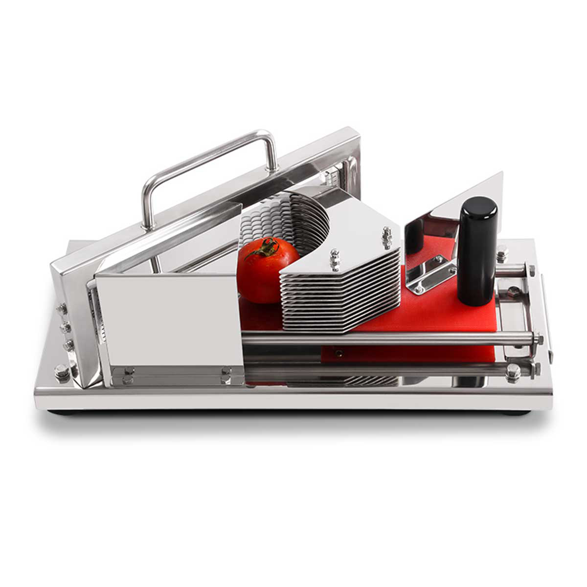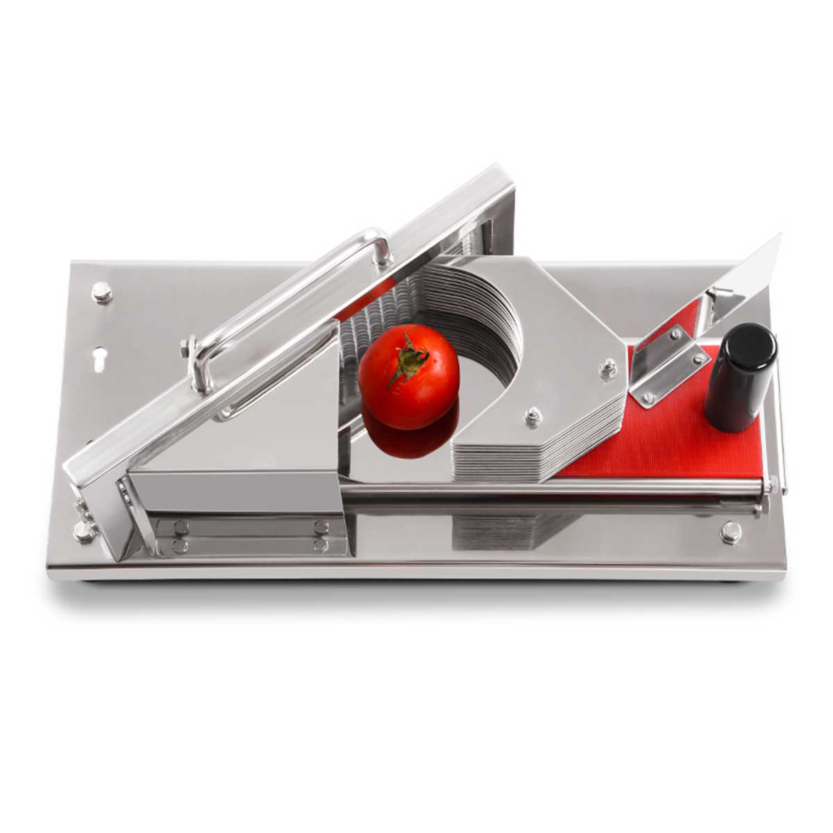 Deze tomatensnijder is door zijn scherpe kartelmessen niet alleen geschikt voor tomaten maar ook voor andere soorten fruit, door deze super scherpe messen is het mogelijk om mooie gladde plakken te snijden. Het ontwerp van deze tomatensnijder is zeek gebruiksvriendelijk. Het apparaat is voorzien van 4 sterke zuignappen waarmee tijdens gebruik het stevig op het werkblad blijft liggen. Door simpelweg uw stuk fruit in de houder te plaatsen en de hendel in te duwen drukt u het fruit er zo doorheen.
