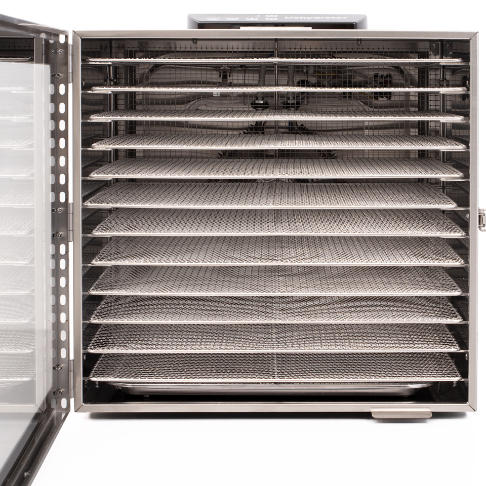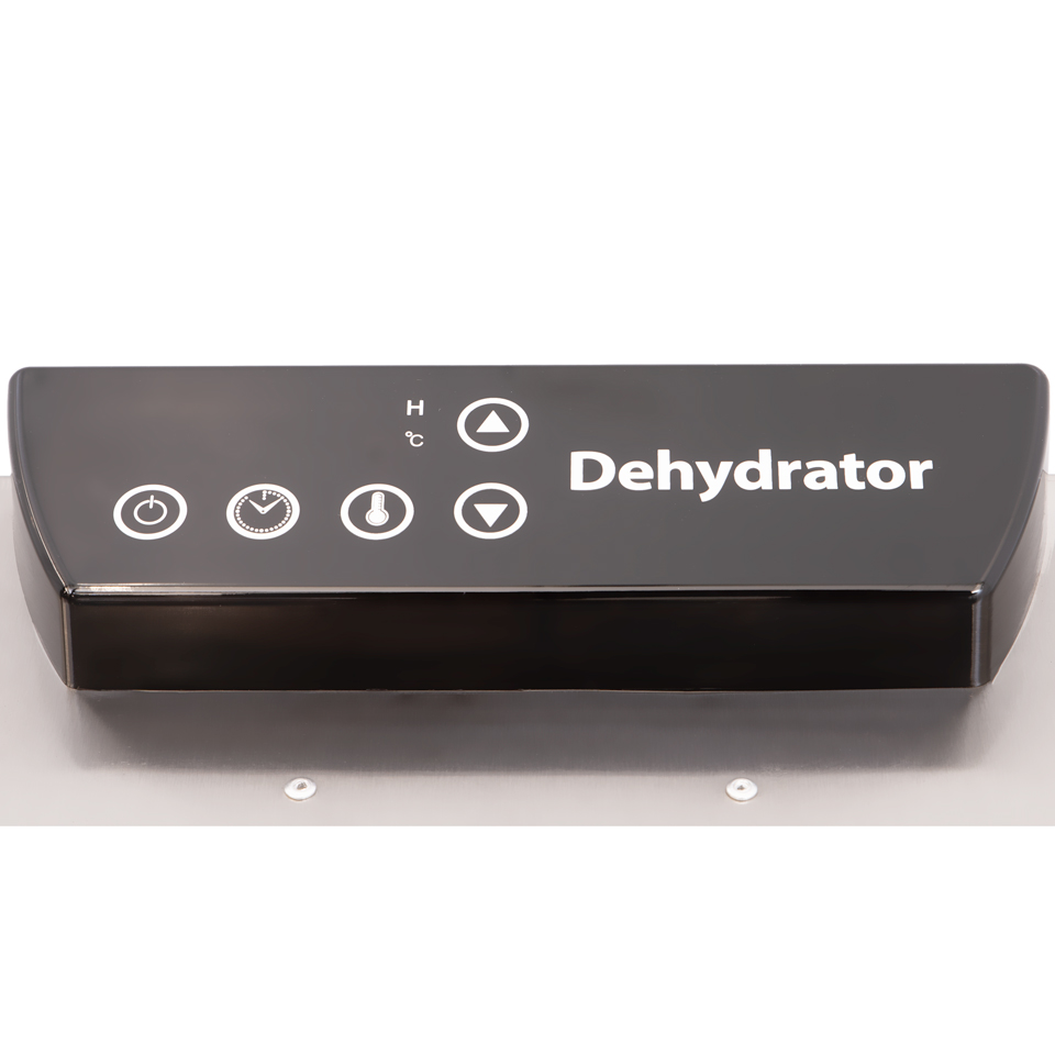 Met het digitale bedieningspaneel stel je droogtijd en temperatuur nauwkeurig in. Het temperatuurbereik van 30°C tot 90°C en een instelbare droogtijd tot 24 uur geven je maximale controle over het droogproces – van langzaam drogen van kruiden tot krachtig drogen van vlees voor jerky.
