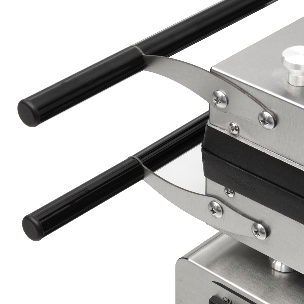 Het wafelijzer is geschikt voor 2 grote wafels (105 x 170 mm) per bakronde. De geïntegreerde timer helpt je om elke batch precies even lang te bakken, zodat je zonder stress meerdere bestellingen tegelijk kunt draaien. De RVS behuizing is duurzaam, hygiënisch en eenvoudig te reinigen, perfect voor intensief dagelijks gebruik.