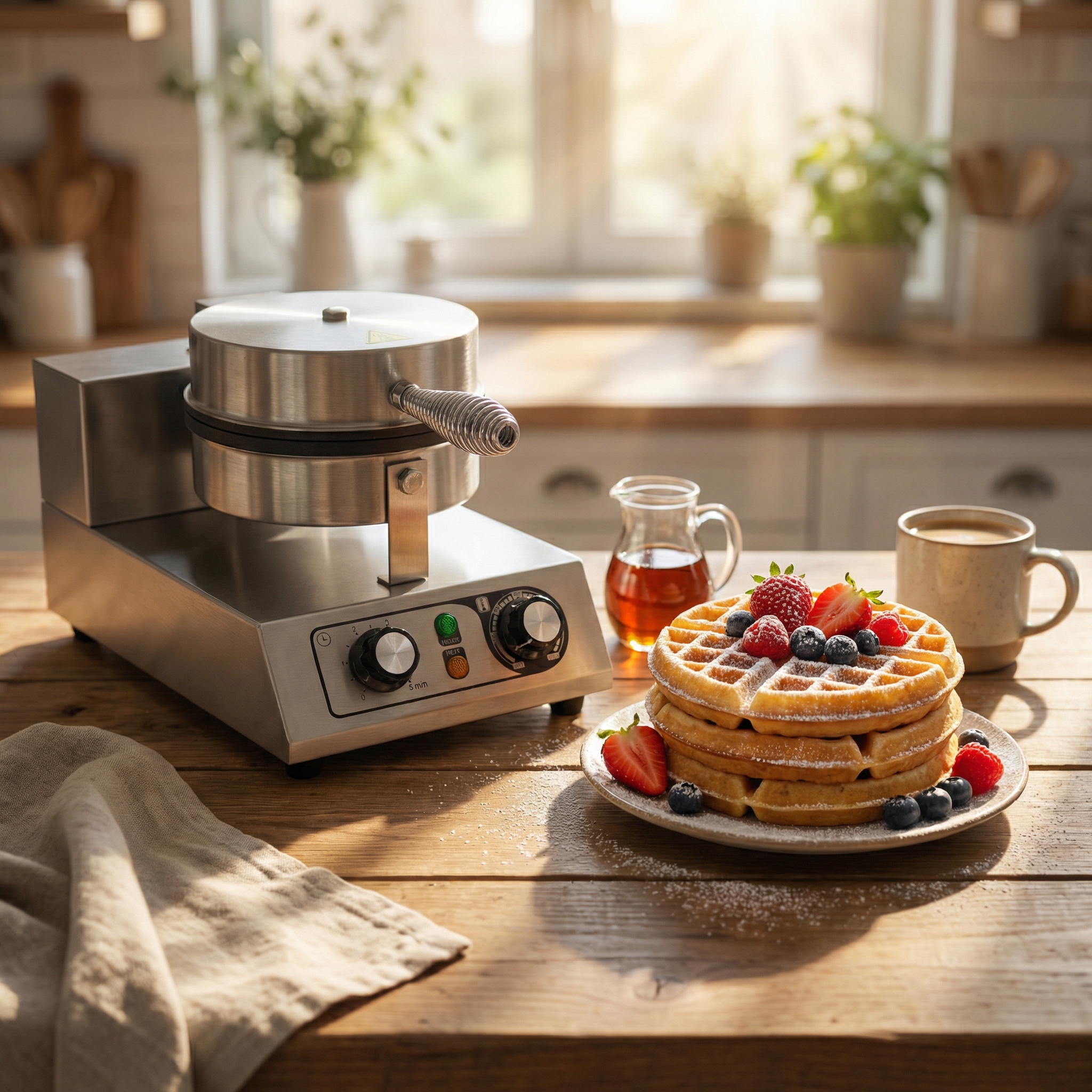 Met dit hoogwaardige wafelijzer van HCB maakt u in een handomdraai heerlijke wafels, perfect voor ontbijt, lunch of dessert. Het wafelijzer heeft een strak en modern design, compleet gemaakt van RVS, waardoor het een aanwinst is voor elke keuken.