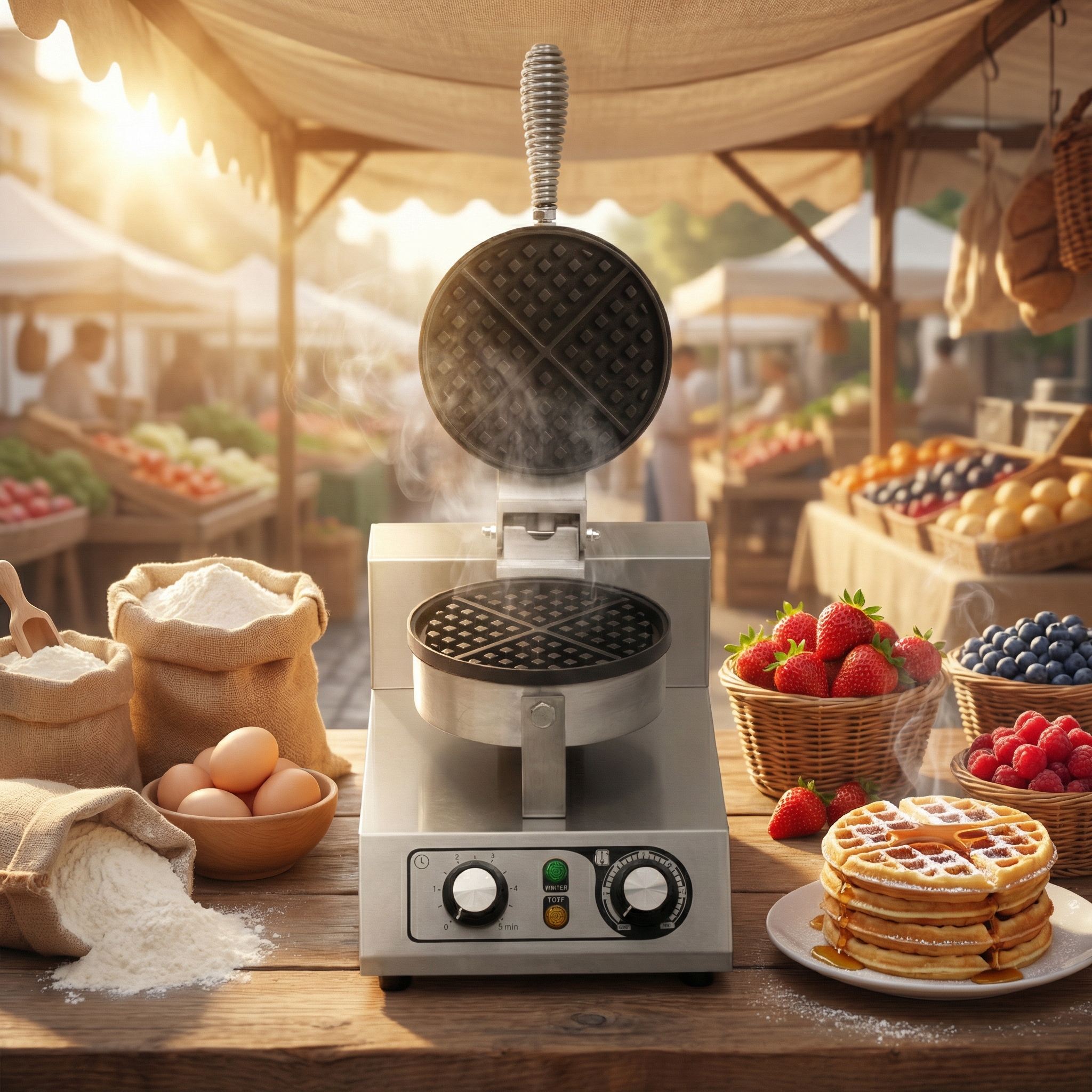 HCB Wafelijzer – ronde wafels – timer – 230V – RVS