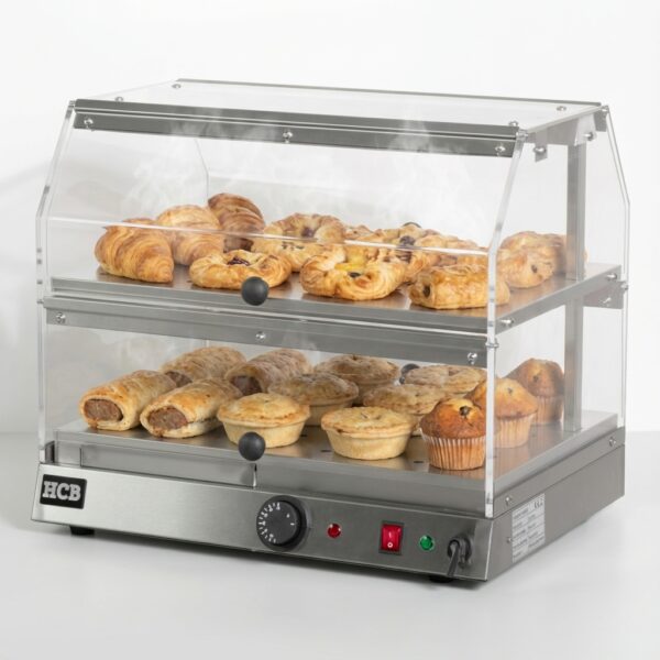 De HCB warmhoudvitrine is de perfecte oplossing voor het warmhouden en presenteren van heerlijke gerechten in restaurants, cafés, bakkerijen, markten en braderieën. Met zijn stijlvolle design functionaliteiten is deze warmhoudvitrine een mooie aanvulling aan je bedrijf.
