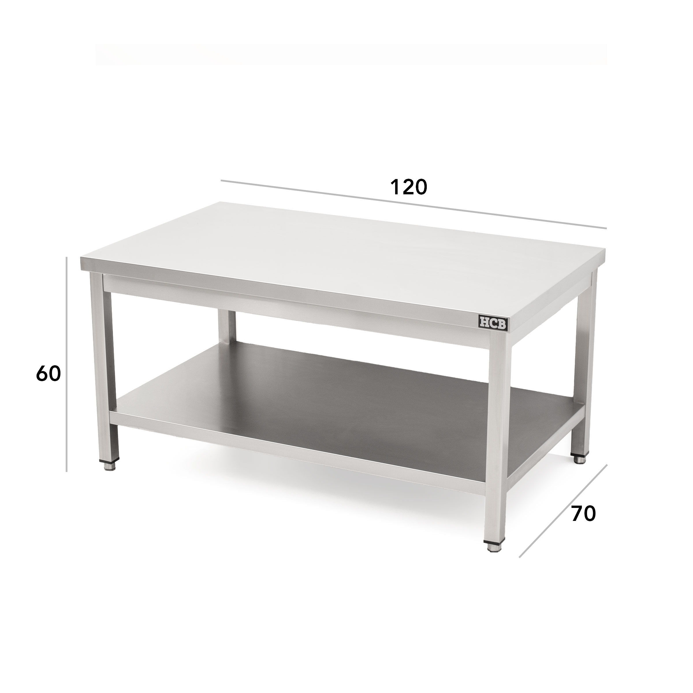 HCB Pro-line Werktafel – met onderschap – 120 x 70 x 60 cm – RVS